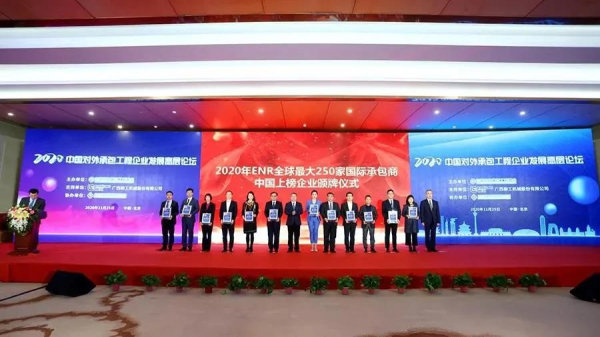 11月25日,中國對外承包工程商會在京舉辦2020中國對外承包工程企業(yè)發(fā)展高層論壇,并舉行了2020年ENR全球最大250家國際承包商中國上榜企業(yè)頒牌儀式和2020年度對外承包工程行業(yè)A級企業(yè)頒牌儀式。國際公司在“2020年ENR國際承包商250強”榜單中位列第95位,獲得授牌的同時也榮獲了2020年度對外承包工程行業(yè)A級企業(yè)證書,再次載譽國際市場。