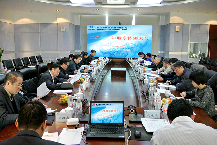 2013年1月5日9時(shí),哈爾濱電氣股份有限公司在本部大樓17樓1號(hào)會(huì)議室召開2013年股東特別大會(huì),審議通過(guò)了第七屆董事會(huì)及監(jiān)事會(huì)成員。